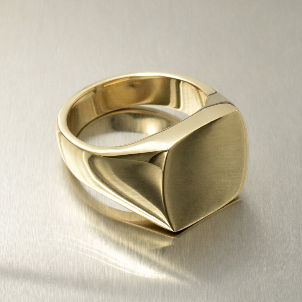 9K gold cushion shape signet ring