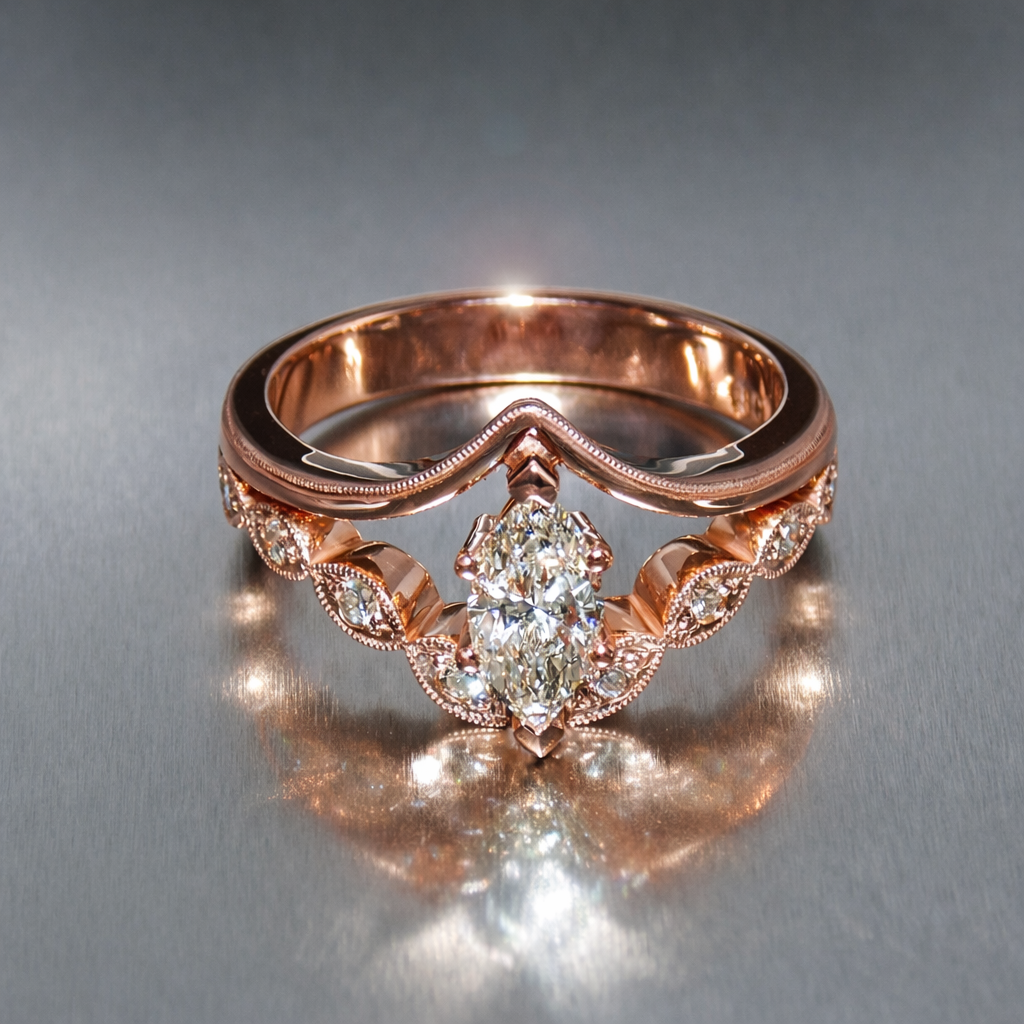 Marquise cut diamond engagement ring set in 9ct rose gold